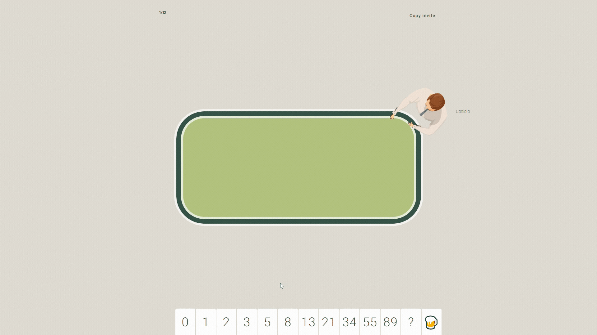 O PO ou responsável por conduzir a planning deve criar a sala, e enviar o link da sala criada, clicando em "Copy Invite" para os jogadores.